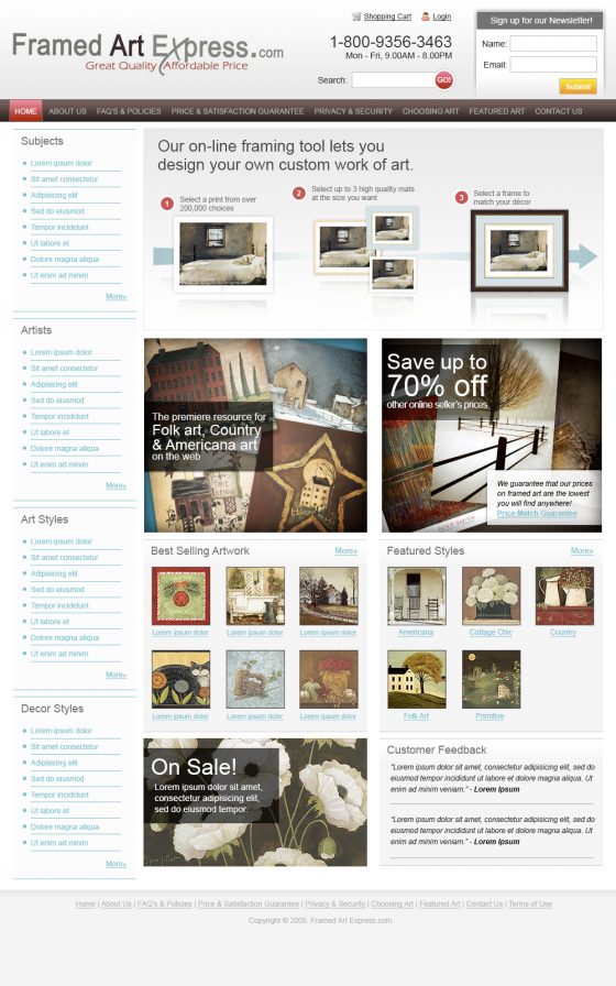 Designed a website UI mockup for Framed Art Express