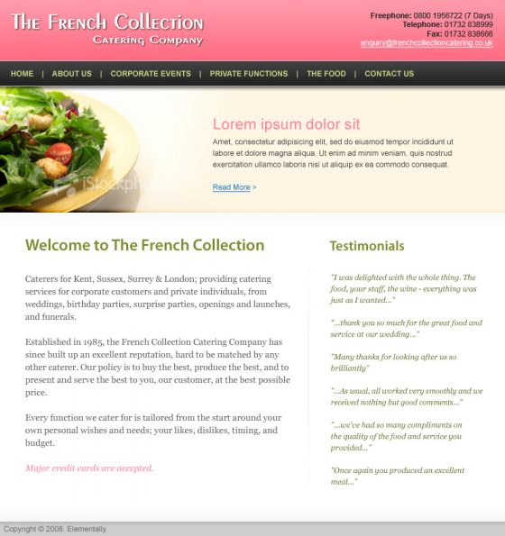 Designed website mockups for The French Collection Catering Company