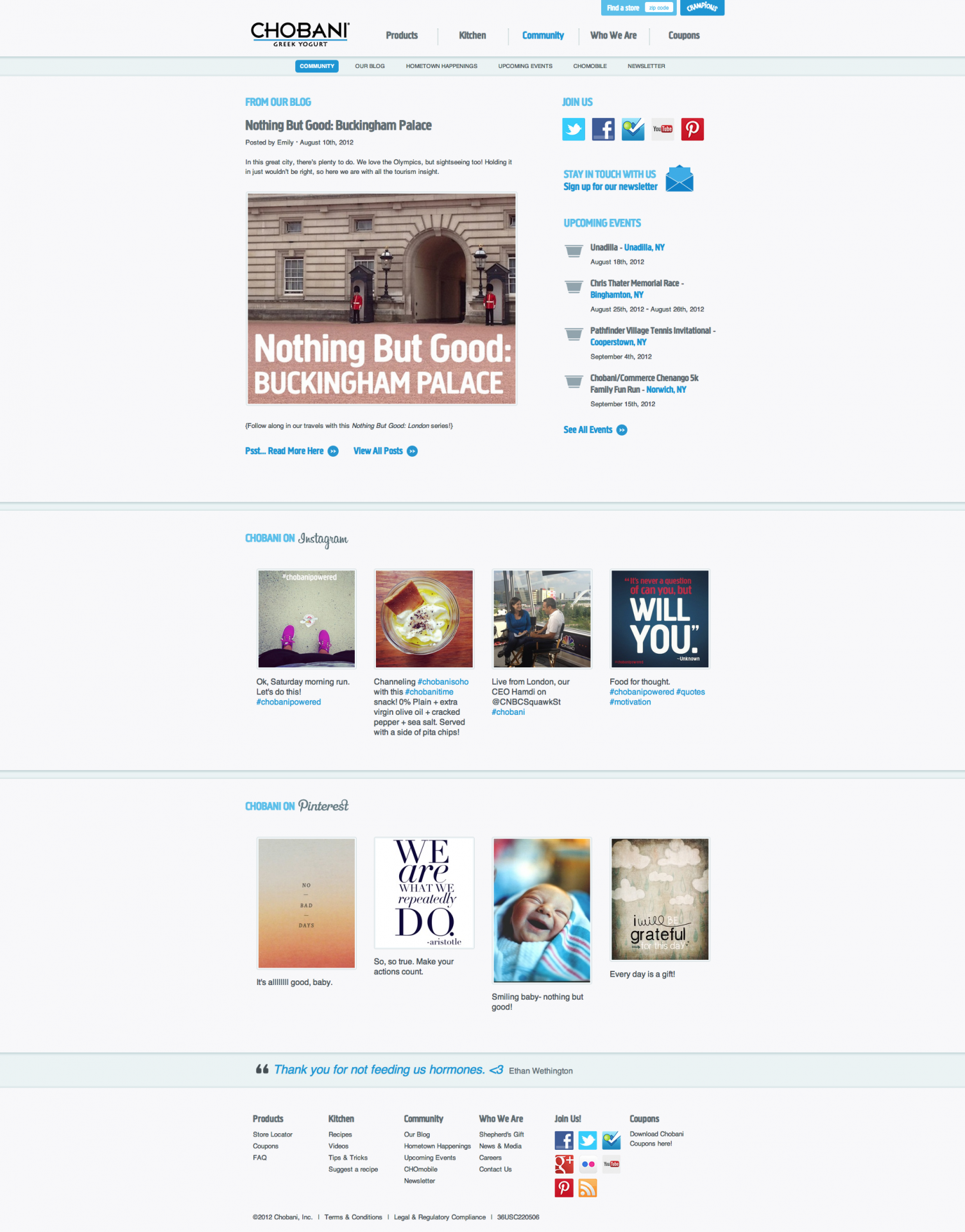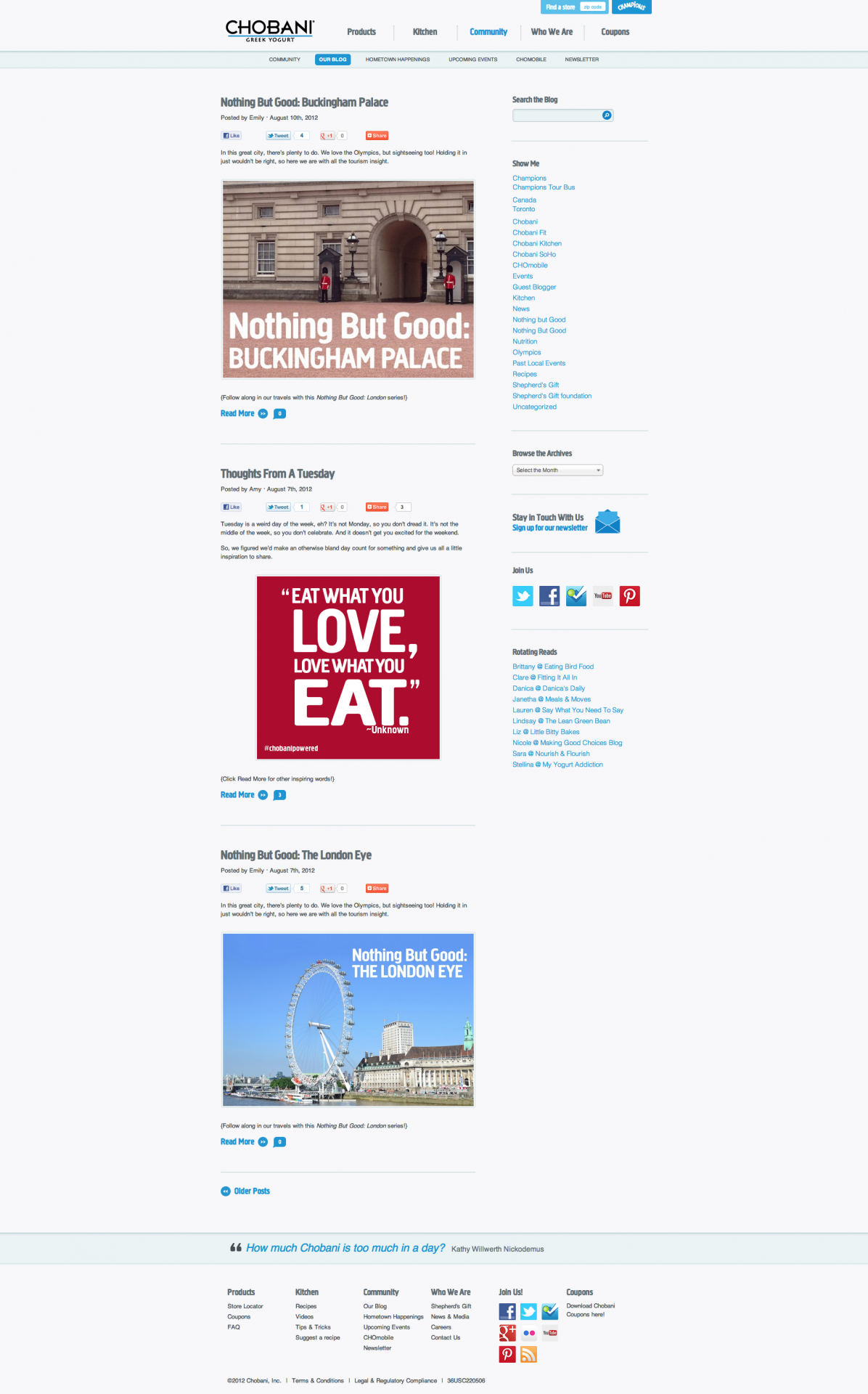 During my time at Big Spaceship, I collaborated with a team of designers, developers and producers to fully redesign Chobani’s consumer website using WordPress. I was involved in developing a variety of front-end and backend components as well as migrating content from legacy platforms.